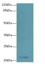 - Western blot. All lanes: TMEM154 antibody at 6 ug/ml+MCE- whole cell lysate Goat polyclonal to rabbit at 1:10000 dilution. Predicted band size: 21 kDa. Observed band size: 21 kDa.