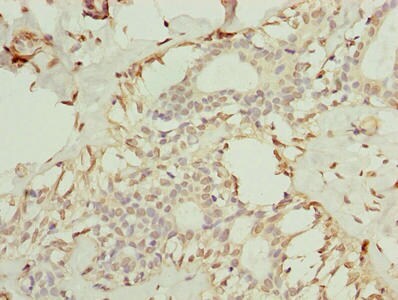 - Immunocytochemical analysis of paraffin-embeded TMEM154 in human breast cancer using a TMEM154 Polyclonal antibody (Product # PA5-112747) at a dilution of 1:100.
