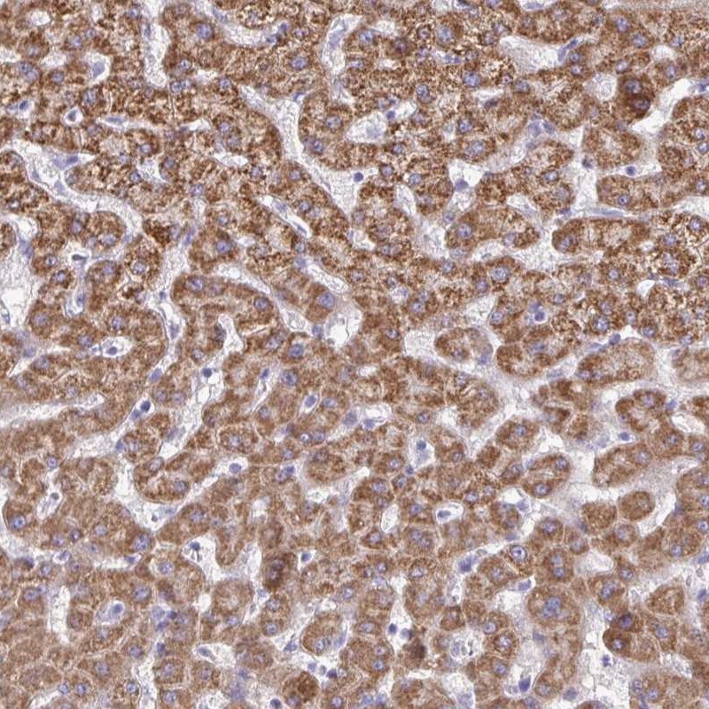 - Immunohistochemical analysis of ACSM2A in human liver using ACSM2A Polyclonal Antibody (Product # PA5-63470) shows strong cytoplasmic positivity in hepatocytes.