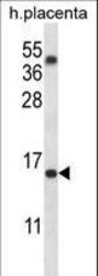 - TM4SF18 Antibody western blot of human placenta tissue lysates (35 ug/lane). The TM4SF18 antibody detected the TM4SF18 protein (arrow).