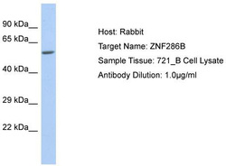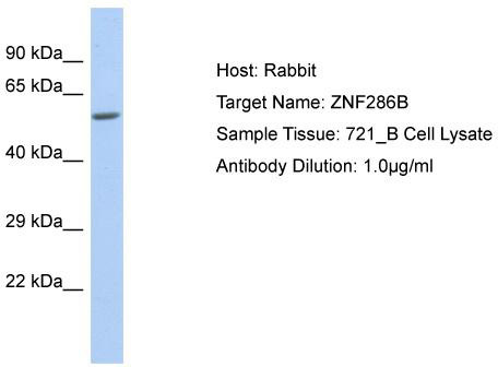 - Host: Rabbit; Target Name: ZNF286B; Sample Tissue: 721_B Whole cell lysates; Antibody Dilution: 1.0 ug/ml