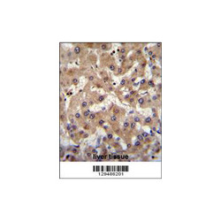 - PRAMEF6 Antibody (C-term) (Cat. #OAAB07662)immunohistochemistry analysis in formalin fixed and paraffin embedded human liver tissue followed by peroxidase conjugation of the secondary antibody and DAB staining.This data demonstrates the use of PRAMEF6 Antibody (C-term) for immunohistochemistry. Clinical relevance has not been evaluated.