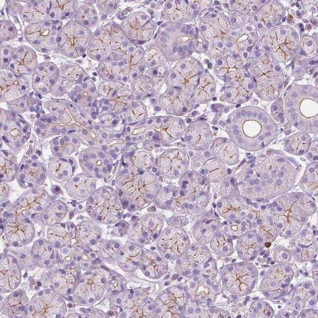 - Immunohistochemical analysis of PRR35 in human salivary gland using PRR35 Polyclonal Antibody (Product # PA5-64407) shows moderate membranous positivity in glandular cells.