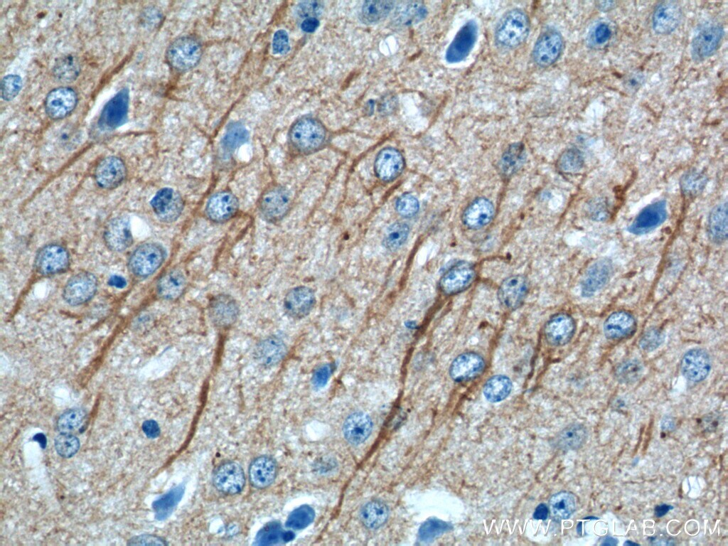 - Immunohistochemistry of paraffin-embedded mouse brain tissue slide using 21638-1-AP ( FAM114A1 Antibody) at dilution of 1:50 (under 40x lens).