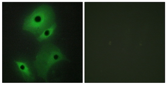 - Immunofluorescence analysis of HeLa cells, using NBL1 antibody. The picture on the right is treated with the synthesized peptide.