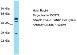 - Host: Rabbit; Target Name: DCST2; Sample Tissue: PANC1 Whole cell lysates; Antibody Dilution: 1.0 ug/ml