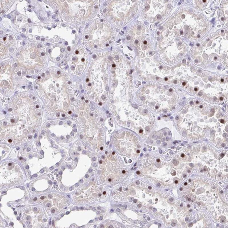 - Immunohistochemical staining of WDR72 in human kidney using WDR72 Polyclonal Antibody (Product # PA5-63438) shows moderate to strong nuclear positivity in cells in tubules.