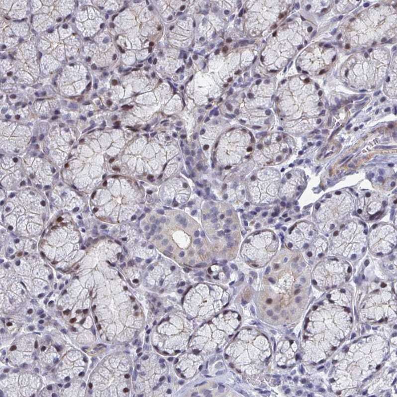 - Immunohistochemical staining of WDR72 in human salivary gland using WDR72 Polyclonal Antibody (Product # PA5-63438) shows moderate to strong nuclear positivity in acinar cells.