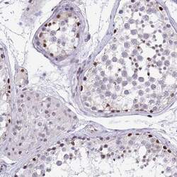 - Immunohistochemical staining of WDR72 in human testis using WDR72 Polyclonal Antibody (Product # PA5-63438) shows moderate to strong nuclear positivity in cells in seminiferous ducts.