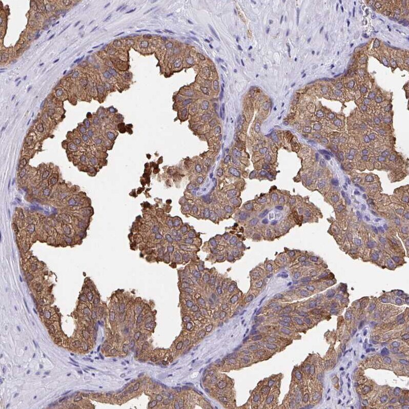 - Immunohistochemical analysis of WDR72 in human prostate using WDR72 Polyclonal Antibody (Product # PA5-63780) shows strong cytoplasmic positivity in glandular cells.