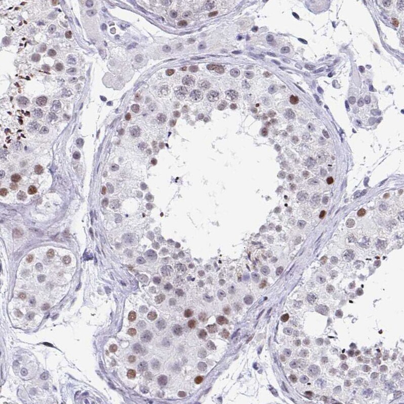 - Immunohistochemical analysis of WDR72 in human testis using WDR72 Polyclonal Antibody (Product # PA5-63780) shows moderate nuclear positivity in cells in seminiferous ducts.
