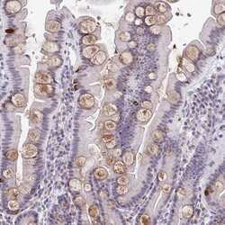 - Immunohistochemical analysis of WDR72 in human small intestine using WDR72 Polyclonal Antibody (Product # PA5-63780) shows moderate cytoplasmic positivity in goblet cells.