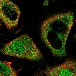 - Immunofluorescent staining of human cell line U-251 MG with PPAN-P2RY11 polyclonal antibody ( Cat # PAB28002 ) at 1-4 ug/ml dilution shows positivity in nucleus but not nucleoli & cytoplasm.