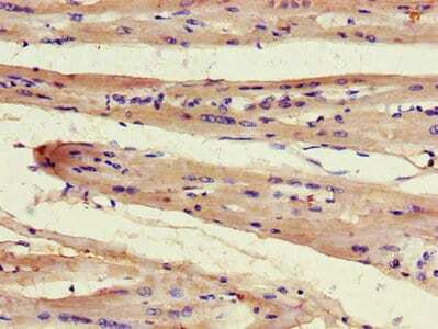 - Immunocytochemical analysis of paraffin-embeded FAM43A in human heart tissue using a FAM43A Polyclonal antibody (Product # PA5-113287) at a dilution of 1:100.