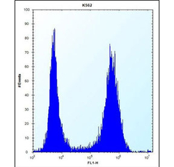 - Flow cytometry testing of fixed and permeabilized human K562 cells with MT-ND3 antibody (right) and isotype control (left).
