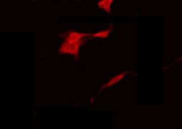 - Immunofluorescent analysis of NBPF Pan in 293 cells. Samples were fixed with paraformaldehyde, permeabilized with 0.1% Triton X-100, blocked with 10% serum (45 min at 25°C) incubated with NBPF Pan polyclonal antibody (Product # PA5-101712) using a dilution of 1:200 (1 hr, 37°C), and followed by goat anti-rabbit IgG Alexa Fluor 594 at a dilution of 1:600.