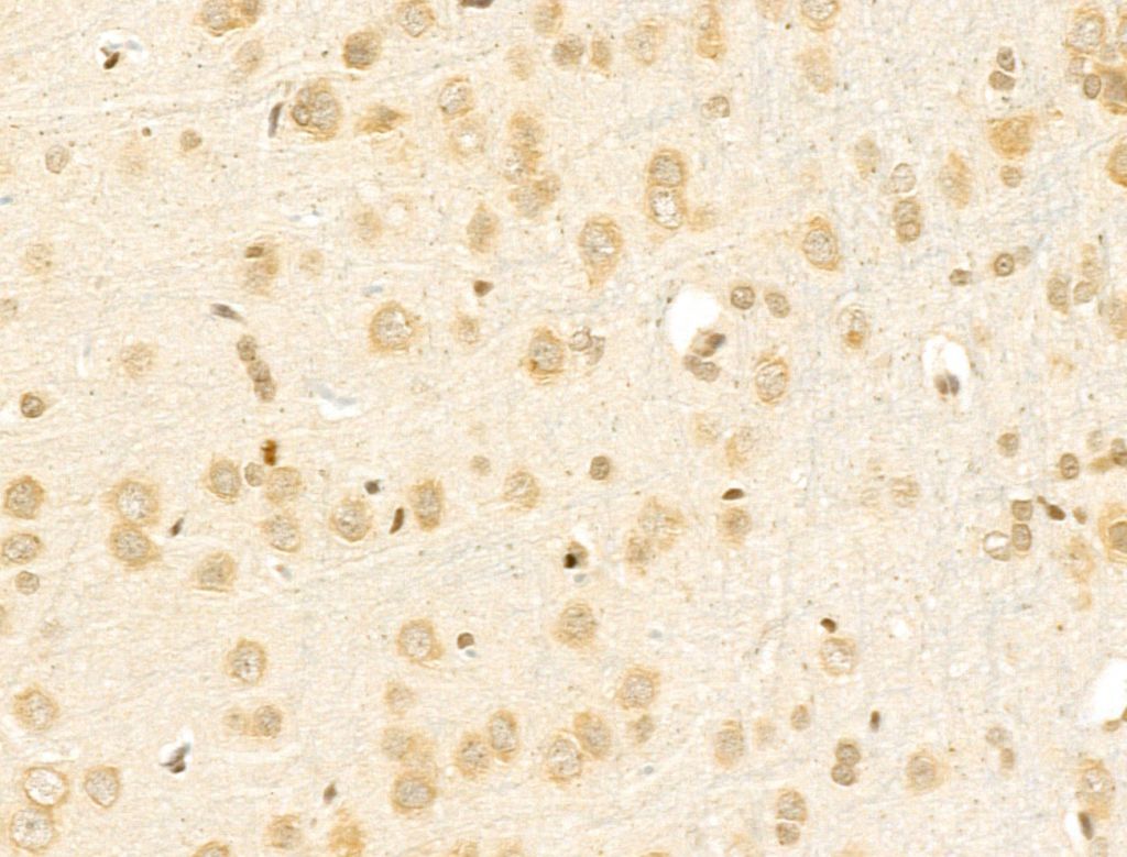 - Immunohistochemistry analysis of NBPF Pan in mouse brain tissue. The sample was formaldehyde fixed and a heat mediated antigen retrieval step in citrate buffer was performed. Samples were incubated with NBPF Pan polyclonal antibody (Product # PA5-101712) using a dilution of 1:100 (4°C overnight) followed by HRP conjugated anti-Rabbit secondary antibody.