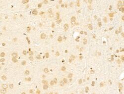 - Immunohistochemistry analysis of NBPF Pan in rat brain tissue. The sample was formaldehyde fixed and a heat mediated antigen retrieval step in citrate buffer was performed. Samples were incubated with NBPF Pan polyclonal antibody (Product # PA5-101712) using a dilution of 1:100 (4°C overnight) followed by HRP conjugated anti-Rabbit secondary antibody.