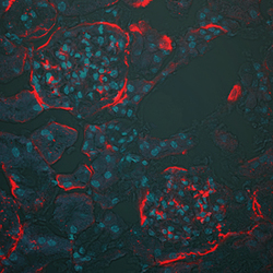 - Complement Component C3d in Mouse Kidney. Complement Component C3d was detected in perfusion fixed frozen sections of mouse kidney using Goat Anti-Mouse Complement Component C3d Antigen Affinity-purified Polyclonal Antibody (Catalog # AF2655) overnight at 4 °C. Tissue was stained using the NorthernLights™ 557-conjugated Anti-Goat IgG Secondary Antibody (red; Catalog # NL001) and counterstained with DAPI (blue). Specific staining was localized to basement membrane. View our protocol for Fluorescent IHC Staining of Frozen Tissue Sections.