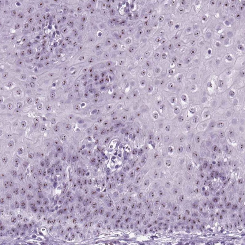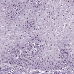 - Immunohistochemical staining of ZNF865 in human esophagus using ZNF865 Polyclonal Antibody (Product # PA5-66974) shows nucleolar positivity in squamous epithelial cells.