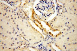 - Immunohistochemistry of paraffin-embedded human kidney using 14943-1-AP (OVCA2 antibody) at dilution of 1:50 (under 40x lens).