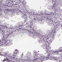 - Immunohistochemical staining of TPPP2 in human prostate using TPPP2 Polyclonal Antibody (Product # PA5-52055) shows low expression as expected.