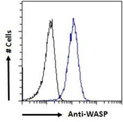 - Flow cytometric analysis of WASP in HepG2 cells using a polyclonal antibody (Product #PA5-18354). HepG2 cells (blue line) were paraformaldehyde fixed and permeabilized with 0.5% Triton. The primary antibody was incubated for one hour (10 µg/mL) followed by an Alexa Fluor 488 secondary antibody (1 µg/mL). IgG control: Unimmunized goat IgG (black line) followed by an Alexa Fluor 488 secondary antibody.
