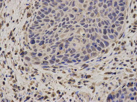 - Immunohistochemistry of paraffin-embedded human esophageal cancer using NCF2 antibody at dilution of 1:100 (400x lens).