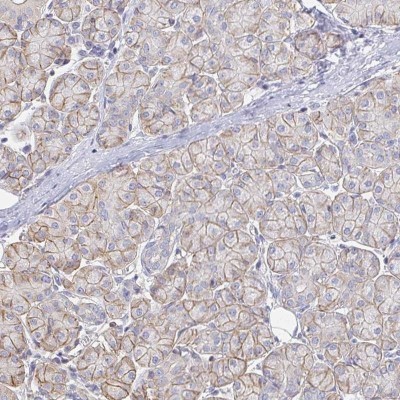 - Immunohistochemistry: TSPAN19 Antibody [NBP2-34151] - Staining of human salivary gland shows moderate membranous positivity in glandular cells.