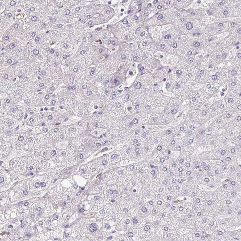 - Immunohistochemical staining of Maltase-Glucoamylase in human liver using Maltase-Glucoamylase Polyclonal Antibody (Product # PA5-63162) shows low expression as expected.