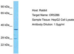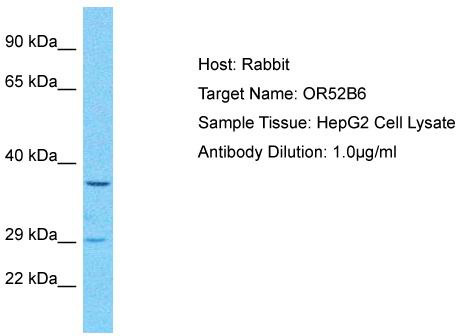 - Host: Rabbit; Target Name: OR52B6; Sample Tissue: HepG2 Whole Cell lysates; Antibody Dilution: 1.0ug/ml