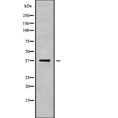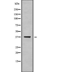 - Western blot analysis of OR52B6 in HepG2 cell lysate. Samples were incubated with OR52B6 polyclonal antibody (Product # PA5-99898).