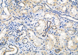 - Immunohistochemistry analysis of OR52B6 in human kidney cancer and adjacent normal tissues. The sample was formaldehyde fixed and a heat mediated antigen retrieval step in citrate buffer was performed. Samples were incubated with OR52B6 polyclonal antibody (Product # PA5-99898) using a dilution of 1:100 (4°C overnight) followed by HRP conjugated anti-Rabbit secondary antibody.