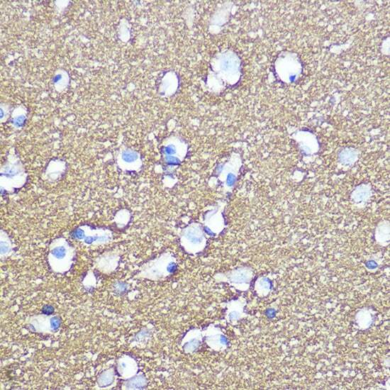- Immunohistochemistry analysis of SNAP25 in paraffin-embedded mouse brain. Samples were incubated with SNAP25 Polyclonal antibody (Product # PA5-87549) using a dilution of 1:100 (40x lens). Perform microwave antigen retrieval with 10 mM PBS buffer pH 7.2 before commencing with IHC staining protocol.