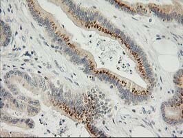- Immunohistochemical staining of paraffin-embedded Adenocarcinoma of Human colon tissue using anti-SNAP25 mouse monoclonal antibody. (Heat-induced epitope retrieval by 10mM citric buffer, pH6.0, 100°C for 10min, TA502970)