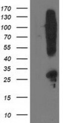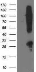 - HEK293T cells were transfected with the pCMV6-ENTRY control (Left lane) or pCMV6-ENTRY SNAP25 (RC202068, Right lane) cDNA for 48 hrs and lysed. Equivalent amounts of cell lysates (5 µg per lane) were separated by SDS-PAGE and immunoblotted with anti-SNAP2. Positive lysates LY418912 (100 µg) and LC418912 (20 µg) can be purchased separately from OriGene.