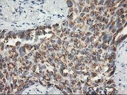- Immunohistochemical staining of paraffin-embedded Carcinoma of Human lung tissue using anti-SNAP25 mouse monoclonal antibody. (Heat-induced epitope retrieval by 10mM citric buffer, pH6.0, 100°C for 10min, TA502970)