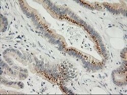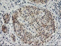 - Immunohistochemical staining of paraffin-embedded Carcinoma of Human pancreas tissue using anti-SNAP25 mouse monoclonal antibody. (Heat-induced epitope retrieval by 10mM citric buffer, pH6.0, 100°C for 10min, TA502970)
