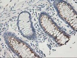 - Immunohistochemical staining of paraffin-embedded human colon tissue within the normal limits using anti-SNAP25 mouse monoclonal antibody. (Heat-induced epitope retrieval by 10mM citric buffer, pH6.0, 100°C for 10min, TA502970)