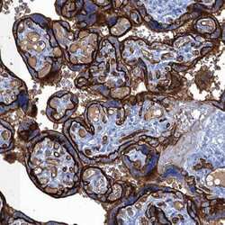 - Immunohistochemical analysis of MYADML2 in human placenta using MYADML2 Polyclonal Antibody (Product # PA5-59758) shows strong membranous positivity in trophoblastic cells.