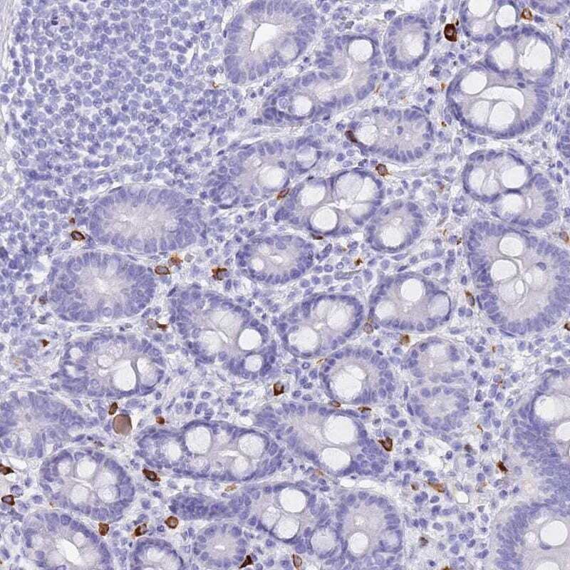 - Immunohistochemical analysis of MYADML2 in human duodenum using MYADML2 Polyclonal Antibody (Product # PA5-61749) shows strong cytoplasmic positivity in a subset of inflammatory cells in the stroma.