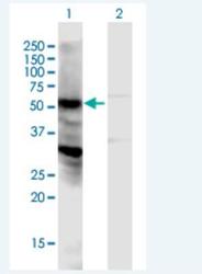 - Western Blot: NPIPL2 Antibody [H00440348-B01P-50ug] - Analysis of LOC440348 expression in transfected 293T cell line by LOC440348 MaxPab polyclonal antibody. Lane 1: LOC440348 transfected lysate(42.02 KDa). Lane 2: Non-transfected lysate.