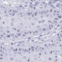 - Immunohistochemistry: TBC1D29 Antibody [NBP2-32437] - Staining of human esophagus shows moderate nucleolar positivity in squamous epithelial cells.