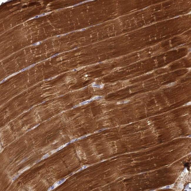 - Immunohistochemical staining of C2orf15 in human skeletal muscle shows strong cytoplasmic positivity in myocytes. Samples were probed using a C2orf15 Polyclonal Antibody (Product # PA5-60189).