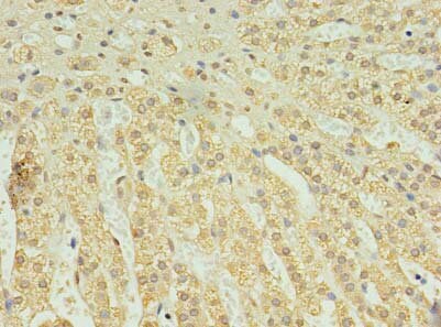 - Immunocytochemical analysis of paraffin-embeded C2orf15 in human adrenal gland tissue using a C2orf15 Polyclonal antibody (Product # PA5-113164) at a dilution of 1:100.