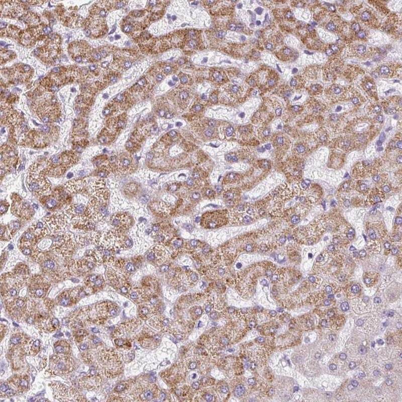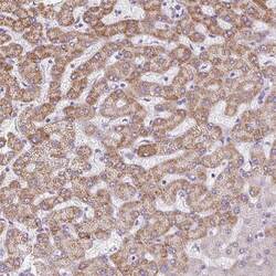- Immunohistochemical analysis of TMEM170A in human liver using TMEM170A Polyclonal Antibody (Product # PA5-63060) shows moderate cytoplasmic positivity in hepatocytes.