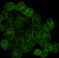 - Immunocytochemistry staining of HeLa cells using EGFR mouse monoclonal antibody (dilution 1:200).