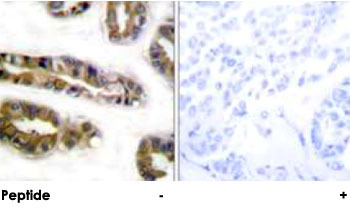 - Immunohistochemical analysis of paraffin-embedded human breast carcinoma tissue using EGFR polyclonal antibody (Cat # PAB18169).Peptide "+" means "peptide blocking".