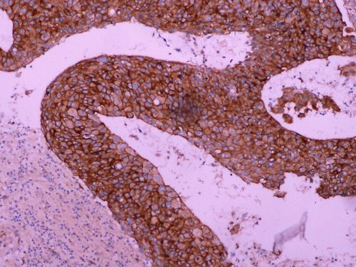 - Immunohistochemical analysis of paraffin-embedded Lung carcinoma using EGF Receptor (3F12) mouse mAb (1/800 dilution) at the Roche Benchmark XT system.