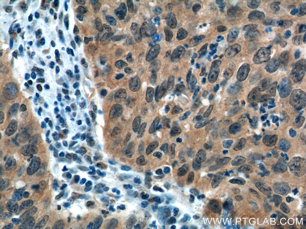 - Immunohistochemistry of paraffin-embedded human cervical cancer tissue slide using 18986-1-AP (EGFR-Specific Antibody) at dilution of 1:200 (under 40x lens). heat mediated antigen retrieved with Tris-EDTA buffer (pH 9).